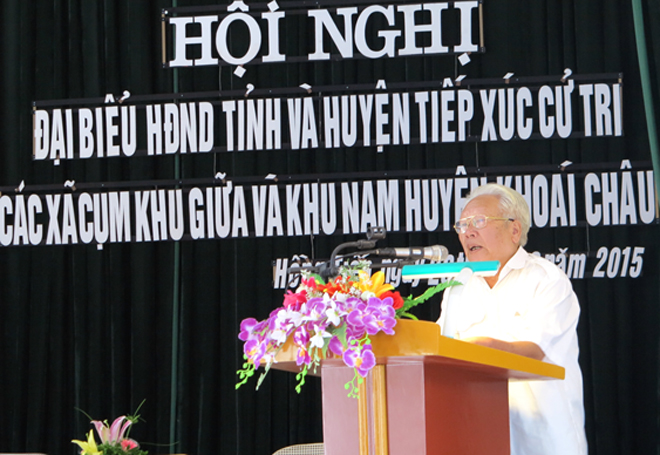 Chiều ngày 26/6, tại UBND xã Hồng Tiến đoàn Đại biểu HĐND tỉnh và huyện tiếp xúc cử tri các xã cụm khu giữa và khu Nam huyện Khoái Châu. Dự và chỉ đạo hội nghị có đồng chí Hoàng Thị Minh Nga, TUV, Chủ tịch Hội LHPN tỉnh; Phạm Văn Nghệ, Phó Trưởng ban Tuyên giáo Tỉnh ủy. Tham dự hội nghị còn có lãnh đạo UBND các xã cùng đông đảo cử tri đại diện cho 13 xã cụm khu giữa và khu Nam huyện Khoái Châu.