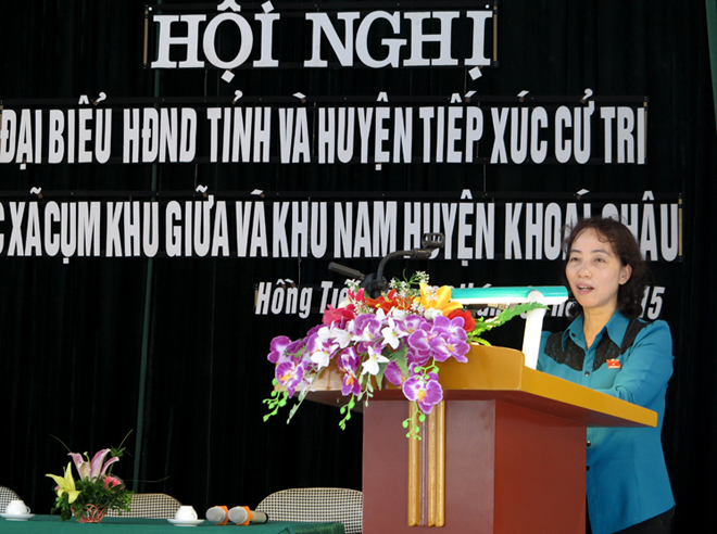 Tại hội nghị các đại biểu đã được nghe 8 lượt ý kiến phát biểu đại diện cho 13 xã xã cụm khu giữa và khu Nam huyện Khoái Châu, trong đó các ý kiến tập trung chủ yếu vào các nội dung: tình trạng sử dụng đất không đúng quy định diễn ra ở nhiều xã chưa được xử lý triệt để; việc xử lý đất dôi dư còn chậm; việc cấp phát thẻ bảo hiểm y tế còn chậm, có nhiều sai sót, nhầm lẫn; đầu tư cơ sở hạ tầng, thiết chế văn hóa nhất là ở các thôn, khu dân cư còn hạn chế; cần tăng cường đầu tư kinh phí cho lĩnh vực nông nghiệp, phát triển hạ tầng giao thông, thủy lợi, xây dựng nông thôn mới…