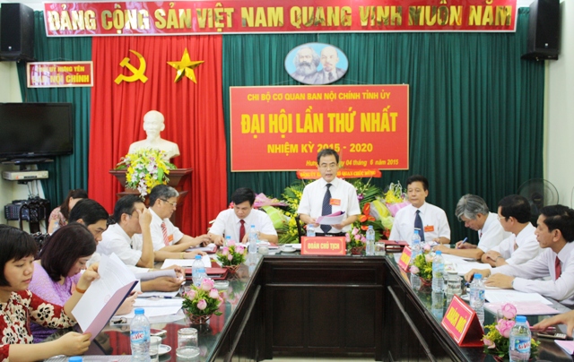 Trong hai ngày 3, 4/6/2015, Chi bộ Ban Nội chính Tỉnh ủy đã tổ chức Đại hội lần thứ nhất, nhiệm kỳ 2015-2020. Dự Đại hội có các đồng chí: Lê Văn Hưng, Tỉnh ủy viên, Trưởng Ban Nội chính Tỉnh ủy; Nguyễn Khắc Chí, Tỉnh ủy viên, Bí thư Đảng ủy Khối các cơ quan tỉnh; các đồng chí đại diện lãnh đạo, cấp ủy chi bộ các ban xây dựng Đảng tỉnh, Văn phòng Tỉnh ủy cùng toàn thể đảng viên chi bộ Ban Nội chính Tỉnh ủy.