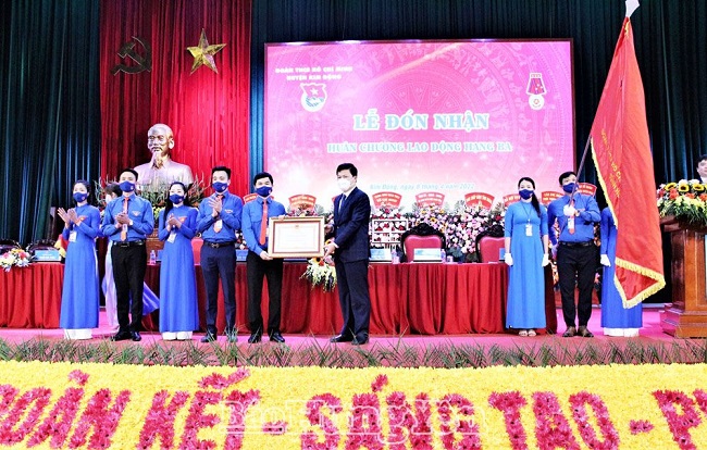 Thừa uỷ quyền của Chủ tịch Nước, đồng chí Trần Quốc Toản, Phó Bí thư Thường trực Tỉnh uỷ, Chủ tịch HĐND tỉnh trao Huân chương Lao động hạng Ba tặng Đoàn TNCS Hồ Chí Minh huyện Kim Động