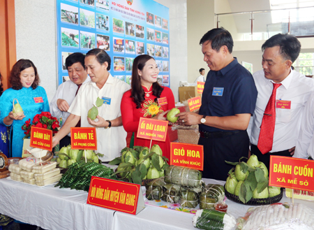 Các đại biểu tham quan nông sản của nông dân trưng bày tại đại hội