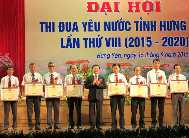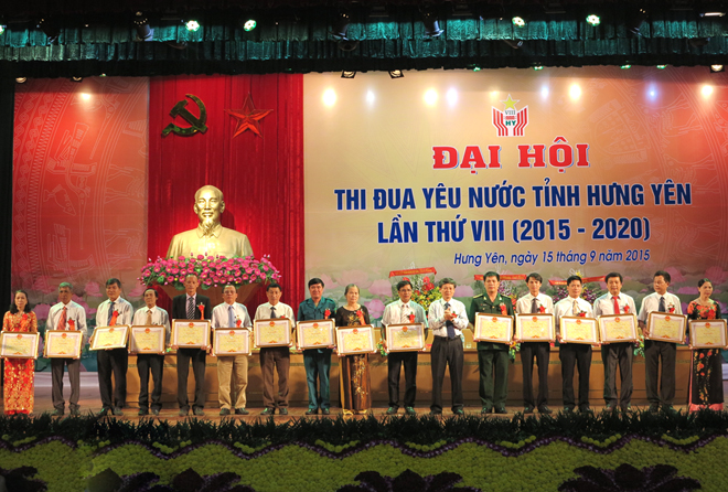 Nhân dịp này, thừa ủy quyền của Thủ tướng Chính phủ, đồng chí Phạm Thị Hải Chuyền, Ủy viên BCH Trung ương Đảng, Bộ Trưởng Bộ Lao động, Thương binh & Xã hội đã trao cờ Thi đua xuất sắc cho 06 tập thể tiêu biểu của tỉnh Hưng Yên. Cũng tại Đại hội, Chủ tịch UBND tỉnh tặng Bằng khen cho 14 tập thể, 47 cá nhân có thành tích xuất sắc trong phong trào thi đua giai đoạn 2011 - 2015; khen 21 tập thể và 15 cá nhân có thành tích xuất sắc trong phong trào thi đua “Cả nước chung sức xây dựng nông thôn mới giai đoạn 2011 - 2015”