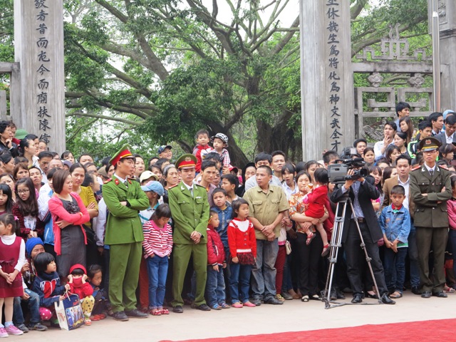 Phần lễ năm nay thêm trang nghiêm với 30 phút màn trống khai hội trước khi tiến hành lễ dâng hương tưởng niệm Tướng quân Phạm Ngũ Lão.