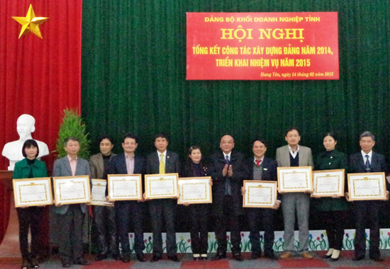 Thay mặt Ban Thường vụ Đảng ủy khối, đồng chí Lê Trí Viễn, Tỉnh ủy viên, Bí thư Đảng ủy khối Doanh nghiệp tỉnh đã tiếp thu ý kiến phát biểu chỉ đạo của đồng chí Phó Bí thư Tỉnh ủy, đồng thời nhấn mạnh một số nhiệm vụ các chi, đảng bộ cần tập trung trong thời gian tới. Cũng trong dịp này, Ban Thường vụ Đảng ủy khối đã tặng Giấy khen cho các tập thể, cá nhân có thành tích xuất sắc trong công tác xây dựng Đảng năm 2014.