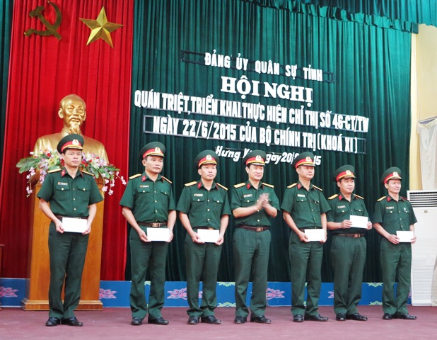 Ngày 20/8, Đảng ủy Quân sự tỉnh đã tổ chức quán triệt, triển khai thực hiện Chỉ thị số 46-CT/TW ngày 22/6/2015 của Bộ Chính trị về “Tăng cường sự lãnh đạo của Đảng đối với công tác bảo đảm an ninh, trật tự trong tình hình mới”. Đại tá Nguyễn Chí Công, Ủy viên Ban Thường vụ Tỉnh ủy, Chỉ huy trưởng BCHQS tỉnh và đại tá Lê Văn Cửu, Phó Bí thư Thường trực, Chính ủy BCHQS tỉnh dự, chỉ đạo Hội nghị.
