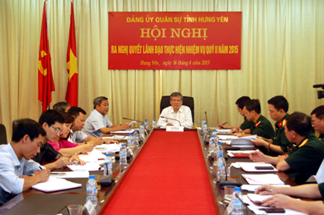 Tại hội nghị, các đại biểu đã tham luận và biểu quyết một số nhiệm vụ, chỉ tiêu trong quý II, cụ thể: 100% số cán bộ, chiến sỹ lực lượng vũ trang tỉnh sẵn sàng nhận và hoàn thành xuất sắc nhiệm vụ được giao, không có quân nhân vi phạm kỷ luật; chỉ đạo hoàn thành lớp đào tạo sỹ quan dự bị bằng nguồn ngân sách địa phương; bảo đảm quân số huấn luyện lực lượng thường trực từ 95% đến 100%, dân quân tự vệ từ 90% trở lên; dự bị động viên đạt 100% chỉ tiêu kế hoạch. Kết quả huấn luyện 100% đạt yêu cầu, trong đó 80% trở lên, đạt khá, giỏi, an toàn tuyệt đối; chỉ đạo tổ chức đại hội đảng bộ, chi bộ cơ sở nhiệm kỳ 2015 - 2020 đạt kết quả tốt; làm tốt công tác chuẩn bị Đại hội Đảng bộ Quân sự tỉnh nhiệm kỳ 2015 – 2020...