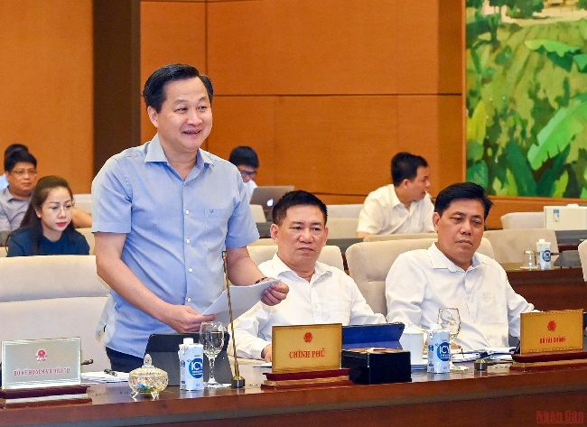 Phó Thủ tướng Chính phủ Lê Minh Khái phát biểu tại phiên họp. (Ảnh: DUY LINH)