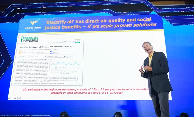 Giáo sư Daniel Kammen, Đại học California, Berkeley (Hoa Kỳ) - đánh giá cao vai trò của xe điện trong việc giảm lượng khí CO2 và các khí nhà kính khác. Ông cũng nhắc đến Vinfast trong nỗ lực sản xuất xe điện cũng như tích hợp việc sử dụng xe điện với phương tiện giao thông công cộng.