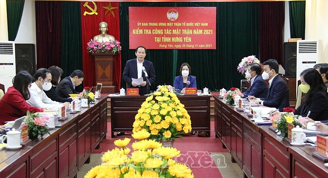Ngày 26.11, đoàn công tác của Ủy ban Trung ương MTTQ Việt Nam do đồng chí Lê Tiến Châu, Uỷ viên BCH Trung ương Đảng, Phó Chủ tịch - Tổng thư ký Uỷ ban Trung ương MTTQ Việt Nam làm trưởng đoàn kiểm tra công tác Mặt trận năm 2021 tại tỉnh Hưng Yên. Tiếp và làm việc với đoàn về phía tỉnh có các đồng chí: Đặng Ngọc Quỳnh, Uỷ viên Ban Thường vụ Tỉnh uỷ, Phó Chủ tịch Thường trực UBND tỉnh; Quách Thị Hương, Uỷ viên Ban Thường vụ Tỉnh uỷ, Trưởng ban Dân vận Tỉnh uỷ, Chủ tịch Uỷ ban MTTQ Việt Nam tỉnh…