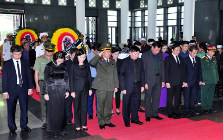 Chủ tịch UBND tỉnh Nguyễn Văn Phóng và Phó Bí thư Thường trực Tỉnh ủy Đỗ Xuân Tuyên cùng các đại biểu trong đoàn đã đến chia buồn với gia quyến Chủ tịch nước Trần Đại Quang.