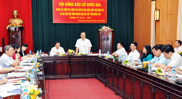 Tại buổi làm việc, đoàn đã nghe đại diện Ủy ban Bầu cử tỉnh báo cáo tình hình triển khai công tác bầu cử đại biểu Quốc hội khóa XIV và đại biểu HĐND các cấp nhiệm kỳ 2016 – 2021 tỉnh Hưng Yên.