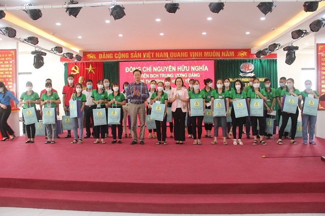 Đồng chí Nguyễn Hữu Nghĩa trao quà tặng công nhân Công ty cổ phần May và Dịch vụ Hưng Long
