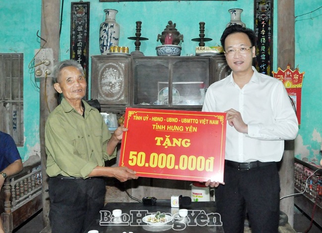 Đoàn đã đến thăm, tặng quà và trao tiền hỗ trợ cho hộ gia đình ông Bùi Xuân Triều ở thôn Nội Lăng, xã Thủ Sỹ (Tiên Lữ) và hộ gia đình anh Phạm Văn Hướng, thôn An Cầu, xã Tống Trân (Phù Cừ). Đây là những gia đình nạn nhân chất độc da cam có hoàn cảnh khó khăn, nhà ở xuống cấp không bảo đảm an toàn. Mỗi gia đình được hỗ trợ số tiền 50 triệu đồng được trích từ Quỹ Bảo trợ nạn nhân chất độc da cam tỉnh.