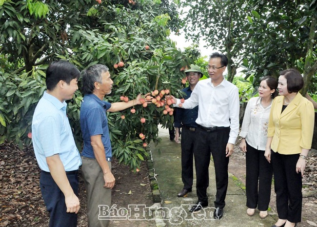Đồng chí Bí thư Tỉnh ủy Nguyễn Hữu Nghĩa và các đại biểu thăm mô hình trồng vải trứng Hưng Yên tại xã Phan Sào Nam (Phù Cừ)