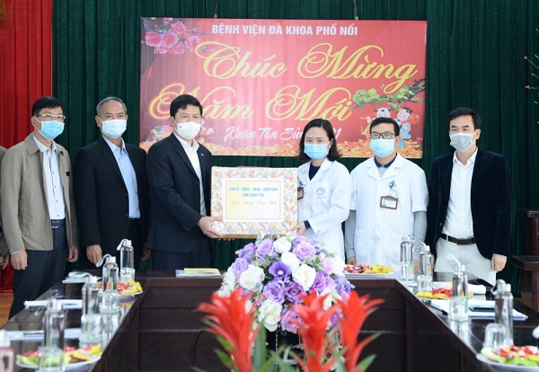 Đồng chí Chủ tịch HĐND tỉnh Trần Quốc Toản chúc tết tại Bệnh viện Đa khoa Phố Nối Tại Bệnh viện Đa khoa Phố Nối, sau khi nghe lãnh đạo đơn vị báo cáo nhanh công tác khám, chữa bệnh, công tác phòng, chống dịch Covid-19 và kế hoạch trực trong dịp Tết Nguyên đán Tân Sửu 2021, đồng chí Chủ tịch HĐND tỉnh Trần Quốc Toản đánh giá cao tinh thần trách nhiệm của đội ngũ cán bộ, y, bác sỹ bệnh viện. Đồng thời đề nghị đội ngũ y, bác sỹ Bệnh viện Đa khoa Phố Nối tiếp tục nêu cao tinh thần trách nhiệm phục vụ nhân dân; nâng cao trình độ chuyên môn nghiệp vụ đáp ứng yêu cầu khám, chữa bệnh cho nhân dân. Đồng chí Chủ tịch HĐND tỉnh Trần Quốc Toản yêu cầu Bệnh viện Đa khoa Phố Nối thực hiện tiêu chí bệnh viện an toàn phòng, chống dịch Covid-19; luôn nêu cao tinh thần cảnh giác, trách nhiệm, chủ động, tích cực trong công tác phòng, chống dịch; bảo đảm đủ nguồn lực về trang thiết bị, thuốc, vật tư, phương tiện phòng hộ cá nhân thiết yếu... để chủ động, sẵn sàng ứng phó với dịch bệnh. Trong những ngày Tết, bệnh viện cần bảo đảm quân số ứng trực; bảo đảm sinh hoạt cho bệnh nhân điều trị tại bệnh viện trong dịp Tết.
