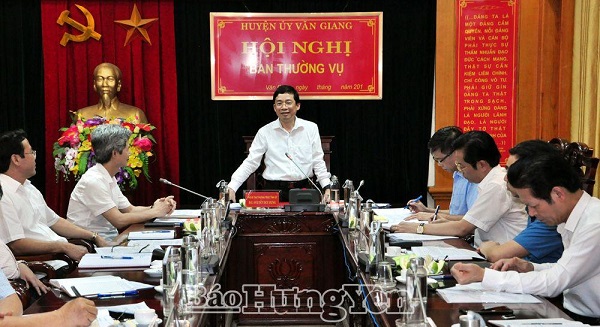 Ngày 14.5, đồng chí Nguyễn Duy Hưng, Phó Bí thư Thường trực Tỉnh ủy làm việc với Ban Thường vụ Huyện ủy Văn Giang về kết quả thực hiện nhiệm vụ phát triển kinh tế - xã hội trên địa bàn huyện; kết quả công tác tổ chức đại hội đảng bộ cấp cơ sở và công tác chuẩn bị Đại hội Đại biểu Đảng bộ huyện Văn Giang lần thứ XXV, nhiệm kỳ 2020 - 2025.