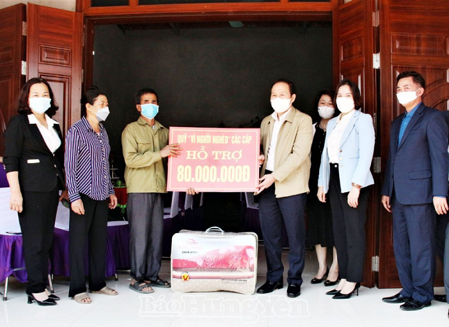 Trao tiền hỗ trợ xây nhà cho gia đình ông Nguyễn Văn Khang, xã Vĩnh Xá (Kim Động)