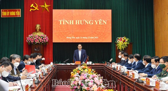 Nhân dịp chuẩn bị đón năm mới 2022, Thủ tướng Chính phủ chúc Đảng bộ, chính quyền và Nhân dân Hưng Yên tiếp tục đoàn kết, thống nhất, giành nhiều kết quả; thực hiện thắng lợi các mục tiêu phát triển kinh tế - xã hội đã đề ra trong năm 2022.