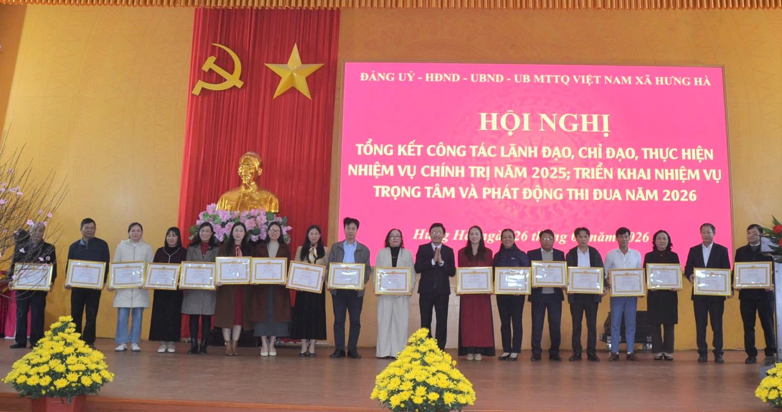 Năm 2026, xã Hưng Hà phát động phong trào thi đua phấn đấu tốc độ tăng giá trị sản xuất ước đạt 11,24%; thu nhập bình quân đầu người ước đạt 90 triệu đồng/người/năm; tỷ lệ hộ nghèo giảm còn dưới 1%... Để đạt chỉ tiêu đề ra, Đảng ủy xã Hưng Hà tiếp tục đổi mới, đa dạng hóa các hình thức tổ chức quán triệt, học tập các nghị quyết, chỉ thị, kết luận của Trung ương, tỉnh; đẩy mạnh công tác xây dựng Đảng và hệ thống chính trị vững mạnh; tập trung lãnh đạo phát triển kinh tế - xã hội, khơi thông các nguồn lực đầu tư; thực hiện hiệu quả các chính sách an sinh xã hội, nâng cao đời sống Nhân dân; giữ vững quốc phòng, an ninh trên địa bàn. Làm tốt công tác sơ kết, tổng kết phong trào thi đua, khen thưởng, thực hiện đồng bộ cả 3 khâu: phát hiện, bồi dưỡng và nhân rộng điển hình tiên tiến, các mô hình mới, gương người tốt việc tốt. Chú trọng tập huấn, nâng cao trình độ nghiệp vụ cho cán bộ làm công tác thi đua khen thưởng. Việc khen thưởng đảm bảo đúng người, đúng việc, dân chủ, công khai, đúng quy định, tạo sự lan tỏa sâu rộng, mạnh mẽ trong xã hội và các tầng lớp Nhân dân..