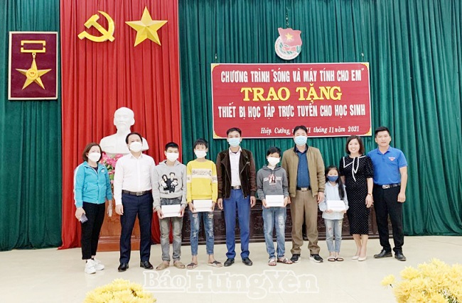 Trao thiết bị học tập trực tuyến cho học sinh có hoàn cảnh khó khăn tại xã Hiệp Cường (Kim Động)