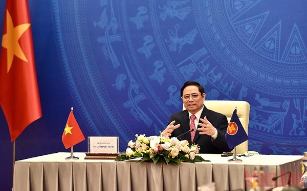 Thủ tướng khẳng định lại Việt Nam kiên định chính sách đối ngoại độc lập, tự chủ, đa dạng hóa, đa phương hóa quan hệ đối ngoại; chủ động, tích cực hội nhập quốc tế toàn diện, sâu rộng; là bạn, đối tác tin cậy và là thành viên tích cực, có trách nhiệm trong cộng đồng quốc tế. Thủ tướng nhấn mạnh trong bối cảnh hiện nay, càng khó khăn càng cần phải nâng cao đoàn kết, có đoàn kết thì khó khăn nào cũng vượt qua. Trên tinh thần đó, Việt Nam luôn coi trọng thúc đẩy quan hệ hữu nghị, hợp tác tốt đẹp với các nước, chung tay giữ vững môi trường hòa bình, an ninh, ổn định để phát triển, thúc đẩy hợp tác đa phương, liên kết và hội nhập quốc tế vì một thế giới xanh, sạch, phát triển bền vững, bao trùm và nhân văn hơn.