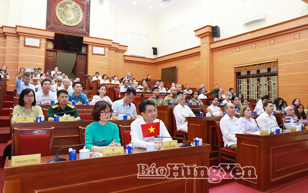 Buổi gặp gỡ diễn ra trong không khí vui tươi, thắm tình đoàn kết. Phát biểu tại buổi gặp gỡ, đồng chí Phó Chủ tịch UBND tỉnh Lê Quang Hòa nhắc lại sự kiện lịch sử cách đây 65 năm trước quân và dân Cuba làm nên chiến thắng Girón vĩ đại; khẳng định quan hệ Việt Nam - Cuba được gắn kết về lý tưởng cách mạng cao đẹp, đấu tranh vì độc lập, tự do tạo nên sự đồng cảm, thấu hiểu và sẻ chia giữa hai dân tộc, trở thành mối tình hữu nghị đặc biệt, thủy chung, trong sáng, hiếm có trong quan hệ quốc tế. Đồng chí nhấn mạnh: Hưng Yên là địa phương có dấu ấn đặc biệt trong quan hệ hữu nghị Việt Nam - Cuba. Tiêu biểu là xã Đức Hợp, từ năm 1969 đã thành lập Chi hội hữu nghị đoàn kết với Nhân dân Cuba, trở thành một trong những điểm sáng sớm nhất trong phong trào đoàn kết quốc tế của Nhân dân Việt Nam. Đồng chí tin tưởng với bản lĩnh và ý chí kiên cường, Nhân dân Cuba sẽ tiếp tục vượt qua mọi khó khăn, thử thách, tiếp tục đạt nhiều thành quả trong công cuộc bảo vệ và xây dựng Cuba xã hội chủ nghĩa. Tỉnh Hưng Yên mong muốn tiếp tục nhận được sự quan tâm, hỗ trợ của ngài Đại sứ trong việc kết nối, thúc đẩy các hoạt động giao lưu, hợp tác thiết thực giữa tỉnh Hưng Yên với các địa phương của Cuba trong các lĩnh vực như: Y tế, giáo dục và đào tạo, thể thao, sản xuất công nghiệp mía đường, giao lưu văn hóa…