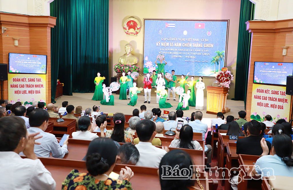Sáng ngày 19/4, tại trụ sở HĐND - UBND tỉnh, tỉnh Hưng Yên phối hợp với Liên hiệp các tổ chức hữu nghị Việt Nam, Hội Hữu nghị Việt Nam - Cuba và Đại sứ quán Cuba tại Việt Nam tổ chức gặp gỡ hữu nghị nhân kỷ niệm 65 năm chiến thắng Girón (19/4/1961- 19/4/2026) nhằm ôn lại ý nghĩa to lớn của chiến thắng Girón đối với cách mạng Cuba, qua đó tăng cường mối quan hệ hữu nghị truyền thống đặc biệt giữa Nhân dân 2 nước Việt Nam - Cuba. Dự buổi gặp gỡ có ngài Rogelio Polanco Fuentes, Đại sứ đặc mệnh toàn quyền Cộng hòa Cuba tại Việt Nam và phu nhân; đồng chí Lê Quang Hòa, Ủy viên Ban Thường vụ Tỉnh ủy, Phó Chủ tịch UBND tỉnh; đại diện lãnh đạo các ban, sở, ngành của tỉnh và đông đảo người bạn Cuba.