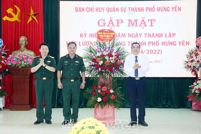 Phát biểu tại buổi gặp mặt, đồng chí Bí thư Thành ủy Hưng Yên Phạm Huy Bình biểu dương, chúc mừng những chiến công, thành tích của LLVT thành phố Hưng Yên đạt được trong suốt 75 năm qua, đồng thời nhấn mạnh một số nhiệm vụ LLVT thành phố Hưng Yên cần tập trung thực hiện trong thời gian tới: Tham mưu với cấp ủy, chính quyền từ thành phố đến cơ sở thực hiện có hiệu quả nhiệm vụ quốc phòng, quân sự địa phương, xây dựng nền quốc phòng toàn dân ở địa phương vững mạnh; xây dựng LLVT thành phố theo hướng cách mạng, chính quy, tinh nhuệ, từng bước hiện đại; xây dựng lực lượng dân quân tự vệ, dự bị động viên tinh gọn, rộng khắp; huấn luyện nghiêm túc, duy trì thực hiện tốt chế độ quy định về sẵn sàng chiến đấu; đẩy mạnh giáo dục chính trị, tư tưởng và thực hiện hiệu quả các phong trào thi đua; chủ động phối hợp với các ban, ngành, đoàn thể tuyên truyền, xây dựng và củng cố “Thế trận lòng dân”, tạo sức mạnh tổng hợp xây dựng nền quốc phòng toàn dân, xây dựng LLVT thành phố vững mạnh, đáp ứng yêu cầu, nhiệm vụ bảo vệ Tổ quốc trong tình hình mới.