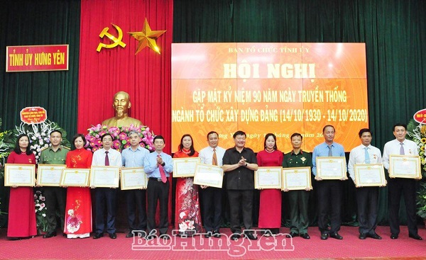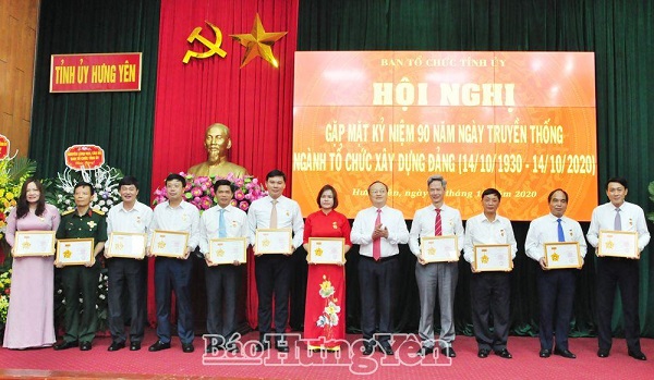 Các đại biểu dự hội nghị Tại hội nghị, các đại biểu ôn lại những dấu ấn lịch sử, thành tựu vẻ vang của ngành Tổ chức xây dựng Đảng. Trải qua 90 năm xây dựng và phát triển, ngành Tổ chức xây dựng Đảng ngày càng lớn mạnh, đáp ứng tốt nhiệm vụ củng cố tổ chức cơ sở đảng, phát triển đảng viên, công tác cán bộ, công tác bảo vệ chính trị nội bộ trong tình hình mới. Đối với tỉnh, quá trình xây dựng, phát triển và trưởng thành của ngành Tổ chức xây dựng Đảng luôn gắn liền với truyền thống vẻ vang của Đảng bộ tỉnh. Tháng 10.1947, Ban Tổ chức Tỉnh ủy Hưng Yên được thành lập, là cơ quan tham mưu chuyên trách, trực tiếp về công tác xây dựng tổ chức đảng, đảng viên và công tác cán bộ. Trải qua các giai đoạn lịch sử khác nhau, nhất là trong nhiệm kỳ 2015-2020, Ban Tổ chức Tỉnh ủy và ban tổ chức các huyện ủy, thị ủy, thành ủy, đảng ủy trực thuộc Tỉnh ủy đã nỗ lực, thường xuyên phối hợp chặt chẽ với các cơ quan, đơn vị có liên quan tham mưu giúp Tỉnh ủy, Ban Thường vụ Tỉnh ủy và cấp ủy các cấp thực hiện đồng bộ, có trọng tâm, trọng điểm các nội dung về công tác tổ chức xây dựng Đảng, đạt được những kết quả khá toàn diện. Nổi bật là tham mưu thực hiện hiệu quả các nghị quyết của Trung ương về sắp xếp tổ chức bộ máy, tinh giản biên chế. Việc nâng cao năng lực lãnh đạo, sức chiến đấu của tổ chức cơ sở đảng và chất lượng đội ngũ cán bộ, đảng viên được quan tâm. Sinh hoạt cấp ủy, đảng bộ và chi bộ được duy trì nền nếp, có nhiều đổi mới. Công tác quy hoạch, đào tạo, bồi dưỡng cán bộ và phát triển đảng viên được chú trọng. Ban Tổ chức Tỉnh ủy đã tham mưu giúp Ban Thường vụ Tỉnh ủy, Ban Chấp hành Đảng bộ tỉnh ban hành đồng bộ các văn bản để chỉ đạo, hướng dẫn tổ chức đại hội đảng bộ các cấp, nhiệm kỳ 2020-2025 bảo đảm đúng nguyên tắc, quy định.