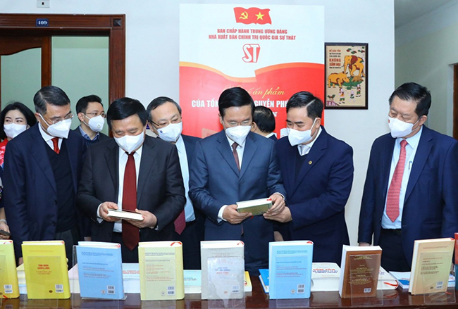 Đồng chí Võ Văn Thưởng, Ủy viên Bộ Chính trị, Thường trực Ban Bí thư và các đồng chí lãnh đạo Đảng, Nhà nước tại Lễ ra mắt cuốn sách của Tổng Bí thư Nguyễn Phú Trọng “Một số vấn đề lý luận và thực tiễn về chủ nghĩa xã hội và con đường đi lên chủ nghĩa xã hội ở Việt Nam”_Ảnh: Tư liệu
