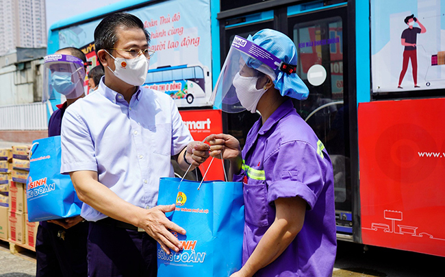 Liên đoàn Lao động thành phố Hà Nội hỗ trợ công nhân, người lao động gặp khó khăn do dịch COVID-19 trên địa bàn thành phố_Ảnh: TTXVN