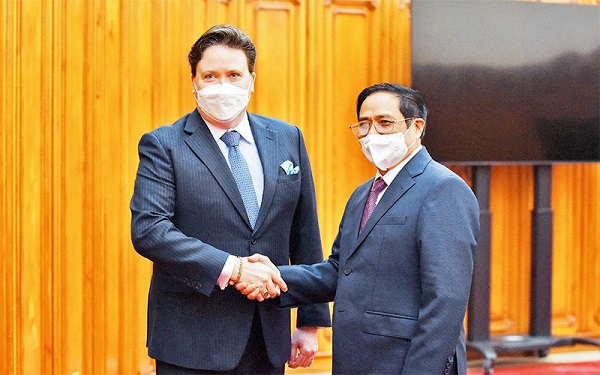 Thủ tướng bày tỏ hài lòng về những bước tiến trong quan hệ hai nước thời gian qua, trong đó quan hệ kinh tế thương mại tiếp tục là động lực quan trọng thúc đẩy quan hệ hai nước với kim ngạch thương mại song phương năm 2021 lần đầu tiên vượt mốc 100 tỷ USD và đạt con số kỷ lục 111 tỷ USD. Hai nước cũng tích cực hợp tác trong phòng, chống dịch Covid-19 và phục hồi sau đại dịch.