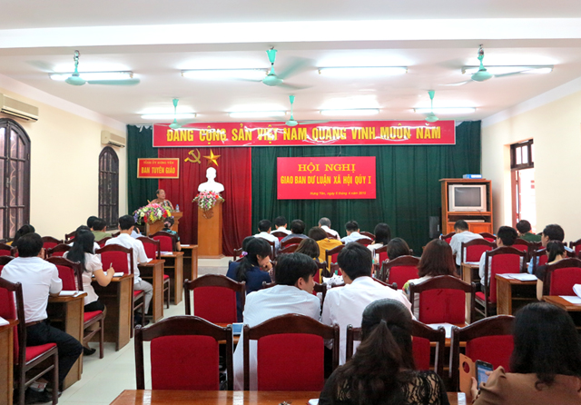 Hội nghị cũng đã nghe báo cáo về kết quả hoạt động của đội ngũ cộng tác viên dư luận xã hội và tình hình tư tưởng quý I năm 2015. Quý I/2015, Ban Tuyên giáo Tỉnh ủy đã nhận được 50 lượt báo cáo của cộng tác viên. Nội dung phản ánh những thông tin, luồng dư luận tích cực, những băn khoăn được đông đảo cán bộ, đảng viên và các tầng lớp nhân dân quan tâm, các vấn đề ở các địa phương, các ngành… Hội nghị cũng đã nghe các cộng tác viên dư luận xã hội phản ánh trực tiếp tình hình tư tưởng, dư luận xã hội ở các địa phương, đơn vị. Các ý kiến phản ánh tập trung vào các nội dung: tình hình phát triển kinh tế - xã hội của địa phương, những vấn đề du luận xã hội quan tâm, băn khoăn về an ninh, chính trị và trật tự an toàn xã hội; công tác quản lý các lễ hội mùa xuân; hoạt động của các tôn giáo, nhất là các tín ngưỡng chưa được cấp phép hoạt động; về công tác chuẩn bị và tổ chức đại hội đảng cấp cơ sở, tiến độ công tác chuẩn bị đại hội đảng bộ cấp huyện, thành phố và tương đương; dư luận xung quanh công tác nhân sự đại hội cấp huyện và cấp cơ sở; dư luận về việc triển khai các chủ trương, chính sách, nhất là các vấn đề tác động nhiều đến đời sống của các tầng lớp nhân dân như: xây dựng nông thôn mới, các vấn đề về giáo dục đào tạo; việc triển khai rà soát, thực hiện chính sách ưu đãi đối với người có công…); những vấn đề băn khoăn, bức xúc ở các địa phương, đơn vị…