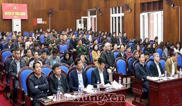 Các đại biểu dự hội nghị tại điểm cầu huyện Văn Giang Phát biểu kết luận hội nghị, đồng chí Bí thư Tỉnh ủy Đỗ Tiến Sỹ yêu cầu: Trong thời gian tới, các cấp ủy đảng, chính quyền, MTTQ và các tổ chức chính trị - xã hội trong tỉnh chủ động nắm bắt tình hình, giữ vững ổn định địa phương, cơ sở; phát huy các tiềm năng, lợi thế của mỗi địa phương, tạo điều kiện thuận lợi cho sản xuất, kinh doanh phát triển; thực hiện tốt việc xây dựng kế hoạch quán triệt, tổ chức triển khai thực hiện Nghị quyết Đại hội đại biểu Đảng bộ tỉnh lần thứ XIX, nhiệm kỳ 2020 – 2025; chú trọng công tác theo dõi, tổng hợp, kiểm tra, giám sát việc học tập nghị quyết, viết thu hoạch; chủ động xây dựng kế hoạch, chương trình hành động thực hiện Nghị quyết Đại hội đại biểu Đảng bộ tỉnh lần thứ XIX và nghị quyết đại hội đảng bộ cấp mình bảo đảm tính khả thi, thiết thực và hiệu quả; nỗ lực phấn đấu hoàn thành tốt nhiệm vụ chính trị của địa phương, đơn vị, góp phần thực hiện thành công nhiệm vụ phát triển kinh tế - xã hội của tỉnh; tiếp tục thực hiện có hiệu quả các chỉ thị, nghị quyết của Đảng gắn với học tập và làm theo tư tưởng, đạo đức, phong cách Hồ Chí Minh; đẩy mạnh công tác thông tin, tuyên truyền về việc học tập, quán triệt Nghị quyết Đại hội đại biểu Đảng bộ tỉnh lần thứ XIX, hướng tới Đại hội đại biểu toàn quốc lần thứ XIII của Đảng; giữ vững an ninh chính trị, trật tự an toàn xã hội, chuẩn bị chu đáo các điều kiện để nhân dân yên tâm vui xuân, đón Tết cổ truyền của dân tộc...
