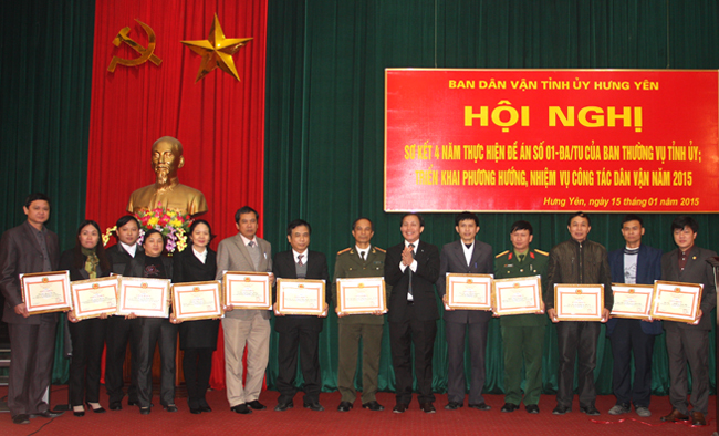 Nhân dịp này, đã có 8 tập thể và 7 cá nhân được tặng giấy khen của Ban Dân vận Tỉnh ủy về thành tích xuất sắc trong công tác dân vận năm 2014.