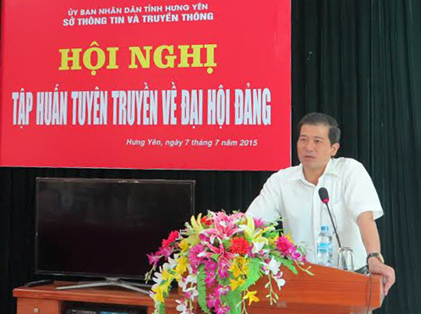 Nhằm nâng cao kỹ năng viết tin, bài tuyên truyền ở cơ sở về Đại hội Đảng các cấp tiến tới Đại hội Đảng bộ tỉnh lần thứ XVIII, Đại hội đại biểu toàn quốc của Đảng lần thứ XII, ngày 7/7/2015, Sở Thông tin – Truyền thông Hưng Yên đã tổ chức Hội nghị tập huấn tuyên truyền Đại hội Đảng các cấp. Dự Hội nghị, có các đồng chí đại diện lãnh đạo Ban Tuyên giáo Tỉnh ủy, Sở Thông tin – Truyền thông, Đài Phát thanh- Truyền hình tỉnh và gần 50 cán bộ, phóng viên, chuyên viên các cơ quan báo chí, các trang thông tin điện tử, phòng văn hóa- thông tin và Đài truyền thanh các huyện, thành phố trong tỉnh.