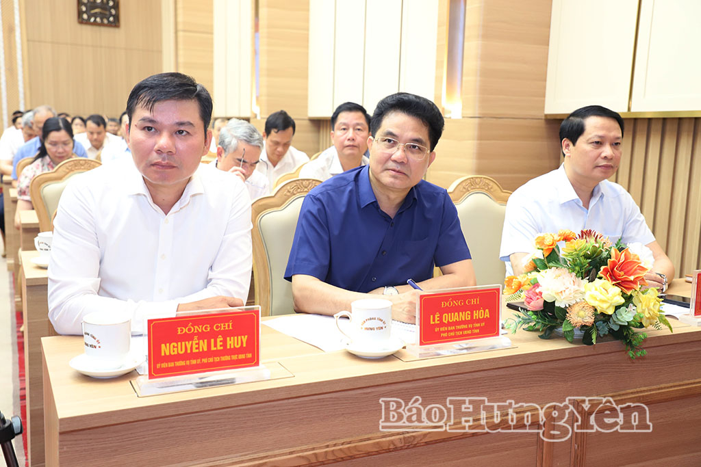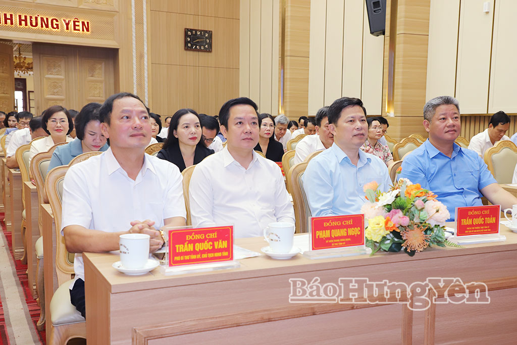 Dự hội nghị tại điểm cầu tỉnh Hưng Yên có các đồng chí: Phạm Quang Ngọc, Ủy viên Ban Chấp hành Trung ương Đảng, Bí thư Tỉnh ủy, Chủ tịch UBND tỉnh; Trần Quốc Toản, Phó Bí thư Thường trực Tỉnh ủy, Chủ tịch Ủy ban MTTQ Việt Nam tỉnh; Trần Quốc Văn, Phó Bí thư Tỉnh ủy, Chủ tịch HĐND tỉnh; Nguyễn Mạnh Quyền, Phó Bí thư Tỉnh ủy; các đồng chí Ủy viên Ban Thường vụ Tỉnh ủy; Thường trực HĐND, lãnh đạo UBND tỉnh; lãnh đạo Đoàn đại biểu Quốc hội tỉnh. Hội nghị được kết nối trực tuyến tới 1.166 điểm cầu trong tỉnh với hơn 65 nghìn đảng viên tham dự.