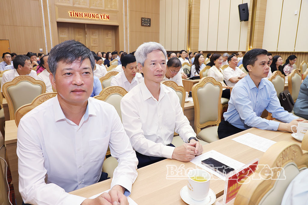 Các đại biểu dự hội nghị tại điểm cầu trụ sở Tỉnh ủy Hưng Yên. Ảnh: Hoàng Bền