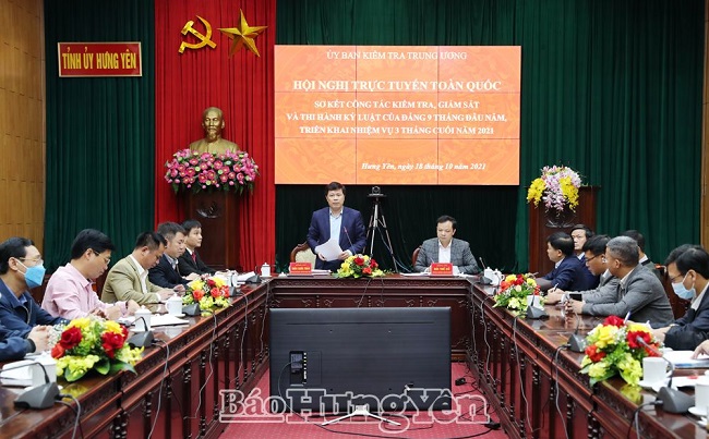 Phát biểu tại điểm cầu Hưng Yên, đồng chí Trần Quốc Toản, Phó Bí thư Thường trực Tỉnh ủy, Chủ tịch HĐND tỉnh yêu cầu: Trong thời gian tới, Ủy ban kiểm tra các cấp trong tỉnh tập trung rà soát, hoàn thiện các nội dung chương trình kiểm tra, giám sát theo kế hoạch năm 2021; phối hợp xây dựng chương trình kiểm tra, giám sát năm 2022 tránh trùng lặp; tập trung kiểm tra, giám sát việc tổ chức, triển khai thực hiện các chỉ thị, nghị quyết của Đảng; chú trọng công tác kiểm tra khi có dấu hiệu vi phạm để ngăn ngừa, khắc phục, xây dựng khối đoàn kết trong tổ chức Đảng; quan tâm củng cố, xây dựng đội ngũ cán bộ kiểm tra các cấp vững mạnh, tinh thông nghiệp vụ; tăng cường nắm chắc tình hình của địa phương, đơn vị; tập trung công tác giải quyết đơn thư, khiếu nại tố cáo ngay từ cơ sở; sớm tổ chức quán triệt, triển khai thực hiện Quy định số 22-QĐ/TW ngày 28.7.2021 của Ban Chấp hành Trung ương về công tác kiểm tra, giám sát và kỷ luật của Đảng và Nghị quyết Trung ương 4 khóa XIII…