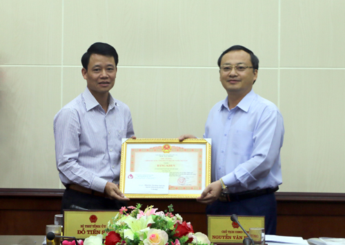 Thừa ủy quyền của Thủ tướng Chính phủ, Bí thư Tỉnh ủy Đỗ Tiến Sỹ trao Bằng khen