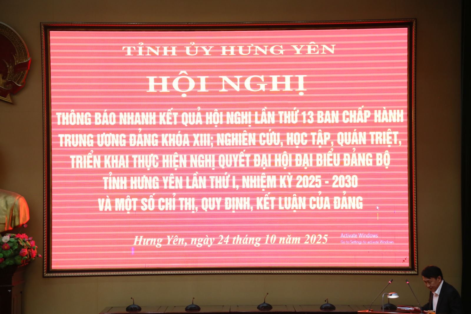 Ngày 24/10, Ban Thường vụ Tỉnh ủy tổ chức hội nghị thông báo nhanh kết quả Hội nghị lần thứ 13 Ban Chấp hành Trung ương Đảng và nghiên cứu, học tập, quán triệt, triển khai thực hiện Nghị quyết Đại hội Đại biểu Đảng bộ tỉnh lần thứ I, nhiệm kỳ 2025 – 2030 và các chỉ thị, kết luận, quy định của Đảng.