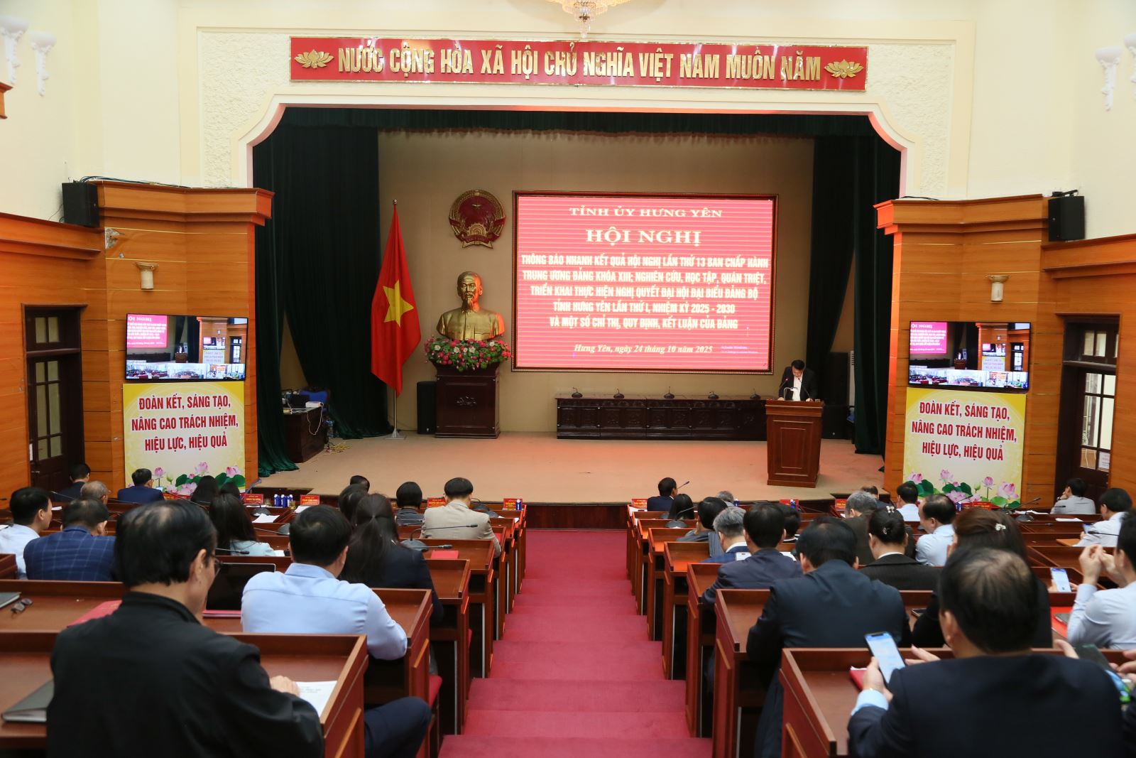 Thay mặt Thường trực Tỉnh ủy, đồng chí Bí thư Tỉnh ủy kêu gọi toàn thể cán bộ, đảng viên, lực lượng vũ trang và Nhân dân trong tỉnh tiếp tục phát huy truyền thống quê hương “văn hiến - cách mạng - anh hùng”, đoàn kết, nỗ lực, quyết tâm thực hiện thắng lợi Nghị quyết Đại hội Đại biểu Đảng bộ tỉnh lần thứ I, nhiệm kỳ 2025 - 2030, sớm đưa Hưng Yên trở thành tỉnh công nghiệp hiện đại, văn minh, giàu đẹp, phồn vinh và hạnh phúc.