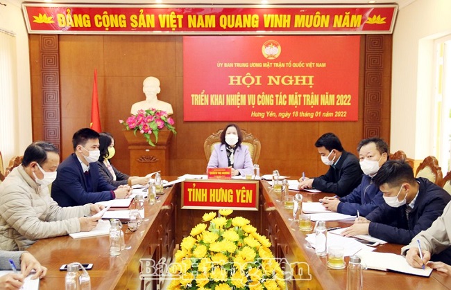Ngày 18.1, Ban Thường trực Ủy ban Trung ương MTTQ Việt Nam tổ chức Hội nghị trực tuyến toàn quốc triển khai nhiệm vụ công tác Mặt trận năm 2022. Đồng chí Đỗ Văn Chiến, Bí thư Trung ương Đảng, Chủ tịch Ủy ban Trung ương MTTQ Việt Nam cùng các đồng chí Phó Chủ tịch Ủy ban Trung ương MTTQ Việt Nam chủ trì hội nghị. Dự hội nghị tại điểm cầu Hưng Yên có đồng chí Quách Thị Hương, Ủy viên Ban Thường vụ Tỉnh ủy, Trưởng ban Dân vận Tỉnh ủy, Chủ tịch Ủy ban MTTQ Việt Nam tỉnh.