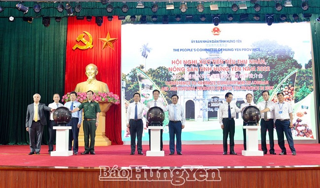 Phát biểu khai mạc hội nghị, Chủ tịch UBND tỉnh Trần Quốc Văn nhấn mạnh: Hội nghị xúc tiến tiêu thụ nhãn, nông sản tỉnh Hưng Yên năm 2022 là dịp để tỉnh Hưng Yên tiếp tục quảng bá, giới thiệu hình ảnh, tiềm năng, thế mạnh về nhãn lồng, đặc sản nổi tiếng của tỉnh, cùng các sản phẩm nông nghiệp tiêu biểu của tỉnh như: Chuối tiêu hồng; cam và các loại quả có múi; nghệ tươi và tinh bột nghệ; vải lai chín sớm, vải trứng; long nhãn, mật ong hoa nhãn; gà Đông Tảo... đến với người tiêu dùng trong và ngoài nước. Năm 2022, toàn tỉnh có trên 5 nghìn ha trồng nhãn, trong đó diện tích cho thu hoạch khoảng 4,8 nghìn ha. Hiện nay, nhãn Hưng Yên bắt đầu cho thu hoạch. Sản lượng nhãn toàn tỉnh ước đạt 45 - 47 nghìn tấn, trong đó 70% sản lượng được truy xuất nguồn gốc xuất xứ; 45 – 50% sản lượng đạt tiêu chuẩn VietGAP. Không chỉ tiêu thụ tại thị trường nội địa, toàn tỉnh có 17 vùng trồng nhãn được cấp mã số vùng trồng bảo đảm xuất khẩu sang thị trường các nước Mỹ, Úc và Trung Quốc..., kết nối, quảng bá và giới thiệu vào thị trường các nước Nhật Bản, Australia, Hàn Quốc…