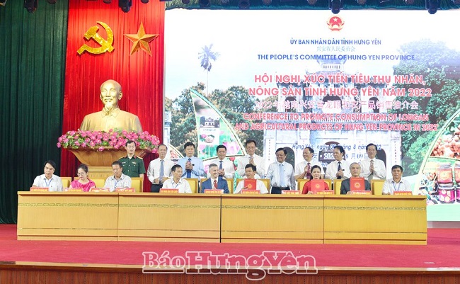 Ngày 9.8, tại Trung tâm hội nghị tỉnh, UBND tỉnh phối hợp với Bộ Công Thương tổ chức hội nghị xúc tiến tiêu thụ nhãn, nông sản tỉnh Hưng Yên năm 2022. Dự hội nghị có các đồng chí Ủy viên BCH Trung ương Đảng: Nguyễn Hữu Nghĩa, Bí thư Tỉnh ủy; Nguyễn Hồng Diên, Bộ trưởng Bộ Công Thương; Lê Minh Hoan, Bộ trưởng Bộ Nông nghiệp và Phát triển nông thôn. Cùng dự có các đồng chí: Trần Quốc Toản, Phó Bí thư Thường trực Tỉnh ủy, Chủ tịch HĐND tỉnh; Trần Quốc Văn, Phó Bí thư Tỉnh ủy, Chủ tịch UBND tỉnh; các đồng chí trong Ban Thường vụ Tỉnh ủy; lãnh đạo UBND tỉnh; đại diện lãnh đạo 25 tỉnh, thành phố trong nước; đại diện Đại sứ quán Trung Quốc tại Việt Nam và trên 200 tập đoàn, công ty, thương nhân, doanh nghiệp trong và ngoài nước; các hợp tác xã, nhà vườn trong tỉnh. Hội nghị được tổ chức theo hình thức trực tiếp kết hợp trực tuyến tới 22 điểm cầu trong nước, 17 điểm cầu tại nước ngoài.