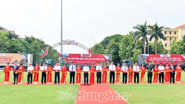 Các đại biểu cắt băng xuất hành đưa nhãn lồng Hưng Yên xuất khẩu và phân phối vào hệ thống các siêu thị,