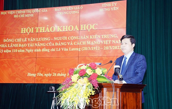 Ngày 26.3, Học viện Chính trị Quốc gia Hồ Chí Minh phối hợp với Ban Tuyên giáo Trung ương và Tỉnh ủy Hưng Yên tổ chức hội thảo khoa học “Đồng chí Lê Văn Lương – người cộng sản kiên trung, nhà lãnh đạo tài năng của Đảng và cách mạng Việt Nam". Các đồng chí: Nguyễn Xuân Thắng, Ủy viên Bộ Chính trị, Giám đốc Học viện Chính trị Quốc gia Hồ Chí Minh, Chủ tịch Hội đồng Lý luận Trung ương; Nguyễn Hữu Nghĩa, Ủy viên BCH Trung ương Đảng, Bí thư Tỉnh ủy Hưng Yên; Phan Xuân Thủy, Phó Trưởng ban Tuyên giáo Trung ương chủ trì hội thảo. Hội thảo được tổ chức trực tuyến tại hai điểm cầu Hà Nội và Hưng Yên.