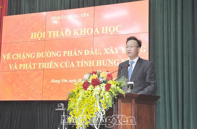 Trình bày báo cáo đề dẫn hội thảo, đồng chí Trần Quốc Toản, Phó Bí thư Thường trực Tỉnh ủy, Chủ tịch HĐND tỉnh nhấn mạnh: Nhiều năm qua, các cấp, các ngành, các nhà khoa học, nhà nghiên cứu trong cả nước và trên địa bàn tỉnh đã dày công tổ chức thực hiện nhiều cuộc hội thảo khoa học, công trình nghiên cứu quan trọng về lịch sử hình thành, xây dựng và phát triển của tỉnh Hưng Yên. Hội thảo này sẽ tiếp tục khai thác sâu hơn nữa, khoa học hơn nữa về các yếu tố lịch sử, văn hóa của vùng đất, con người Hưng Yên, về quá trình thành lập và trưởng thành của Đảng bộ tỉnh, về sự phát triển vượt bậc của kinh tế - xã hội Hưng Yên qua 25 năm tái lập tỉnh. Từ những nguồn tư liệu đã sưu tầm và phát hiện được, hướng tới việc nhận định, đánh giá, lý giải được những thành tựu trên các lĩnh vực của Nhân dân Hưng Yên trong lịch sử. Đồng thời, làm rõ tầm quan trọng của việc thành lập tỉnh Hưng Yên cũng như sự phát triển của tỉnh trong lịch sử. Từ đó, nêu bật ý nghĩa trọng đại của sự kiện thành lập Đảng bộ tỉnh với sự nghiệp cách mạng trên quê hương Hưng Yên và cách mạng Việt Nam. Khẳng định sự phát triển của quê hương Hưng Yên trong công cuộc đổi mới đất nước, đặc biệt là từ sau khi tái lập tỉnh. Qua đó, quảng bá, giới thiệu những thành tựu, tiềm năng, thế mạnh, triển vọng và hình ảnh về mảnh đất, con người Hưng Yên; thu hút các doanh nghiệp, tổ chức kinh tế, xã hội trong và ngoài tỉnh gặp gỡ, trao đổi, liên kết, xúc tiến đầu tư, tạo nguồn lực cho phát triển kinh tế - xã hội của tỉnh Hưng Yên.
