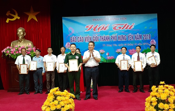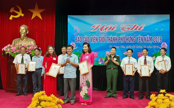 Ngày 05/10/2019, Thành ủy Hưng Yên tổ chức Hội thi Báo cáo viên giỏi thành phố năm 2019. Dự và chỉ đạo Hội thi có các đồng chí: Đỗ Hữu Nhân, Tỉnh ủy viên, Phó Trưởng Ban Thường trực Ban Tuyên giáo Tỉnh ủy; Nguyễn Chí Thanh, Phó Bí thư Thường trực Thành ủy, Trưởng Ban tổ chức Hội thi. Cùng dự có các đồng chí Ủy viên BTV Thành ủy; đại diện lãnh đạo các phòng, đơn vị, cơ sở trực thuộc thành phố...
