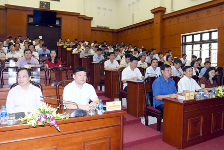 Ngày 14.8, tại Trụ sở HĐND - UBND tỉnh, Thường trực HĐND tỉnh tổ chức hội nghị bồi dưỡng kỹ năng, nghiệp vụ đại biểu HĐND tỉnh, HĐND huyện, thành phố năm 2018. Dự Hội nghị có các đồng chí: Đỗ Xuân Tuyên, Phó Bí thư Thường trực Tỉnh ủy, Chủ tịch HĐND tỉnh; Nguyễn Văn Phóng, Phó Bí thư Tỉnh ủy, Chủ tịch UBND tỉnh. Cùng dự có các đồng chí trong Ban Thường vụ Tỉnh ủy.